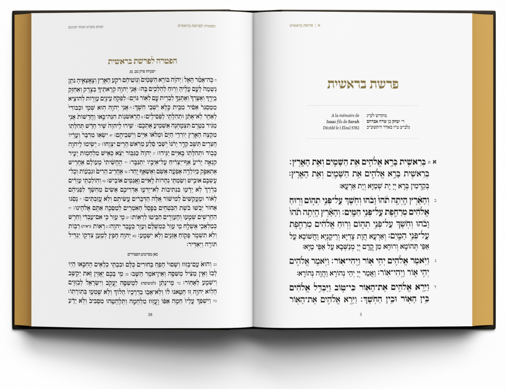 Pour la toute première fois, le Shnaïm Mikra veE’had Targoum est présenté dans une édition exclusive où chaque mot est magnifié par des caractères imposants et chaque verset est délicatement présenté en paragraphes, offrant une lecture extrêmement fluide et plaisante